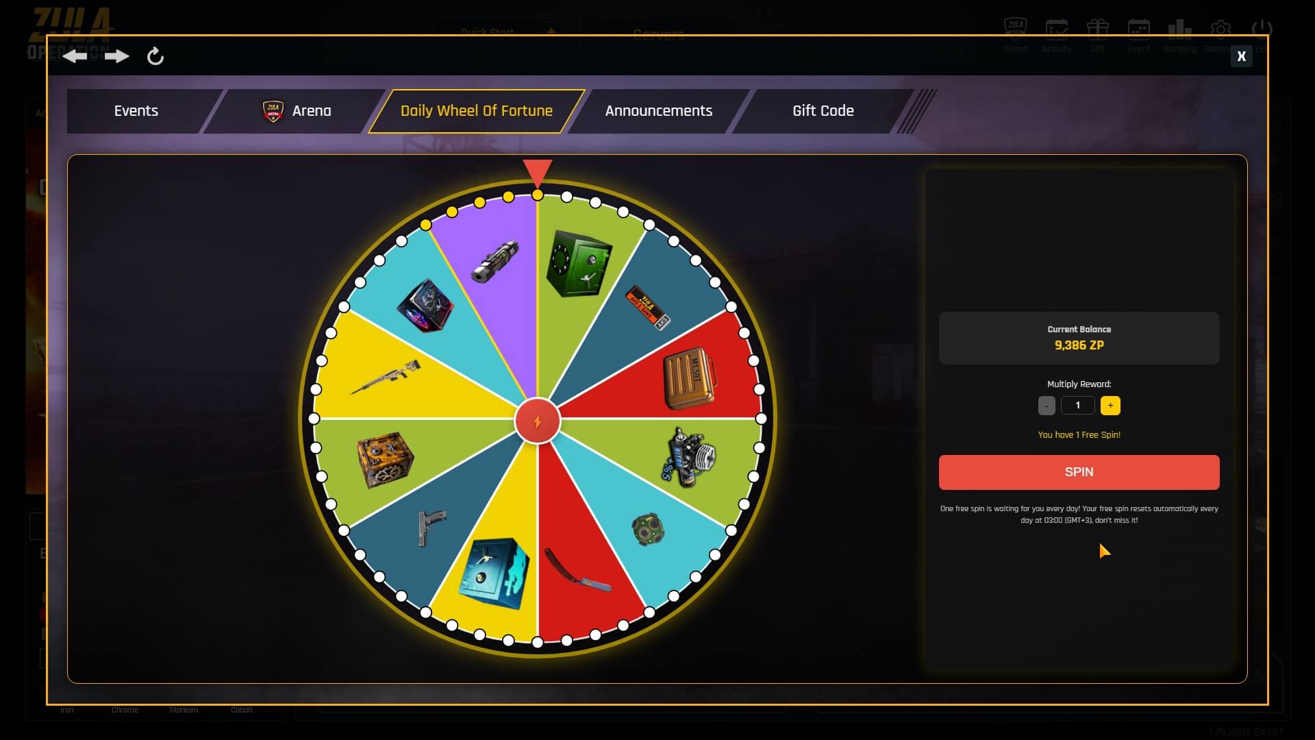 Also, after spinning once for free, you can spin the Zula Gear as many times as you want with ZM.