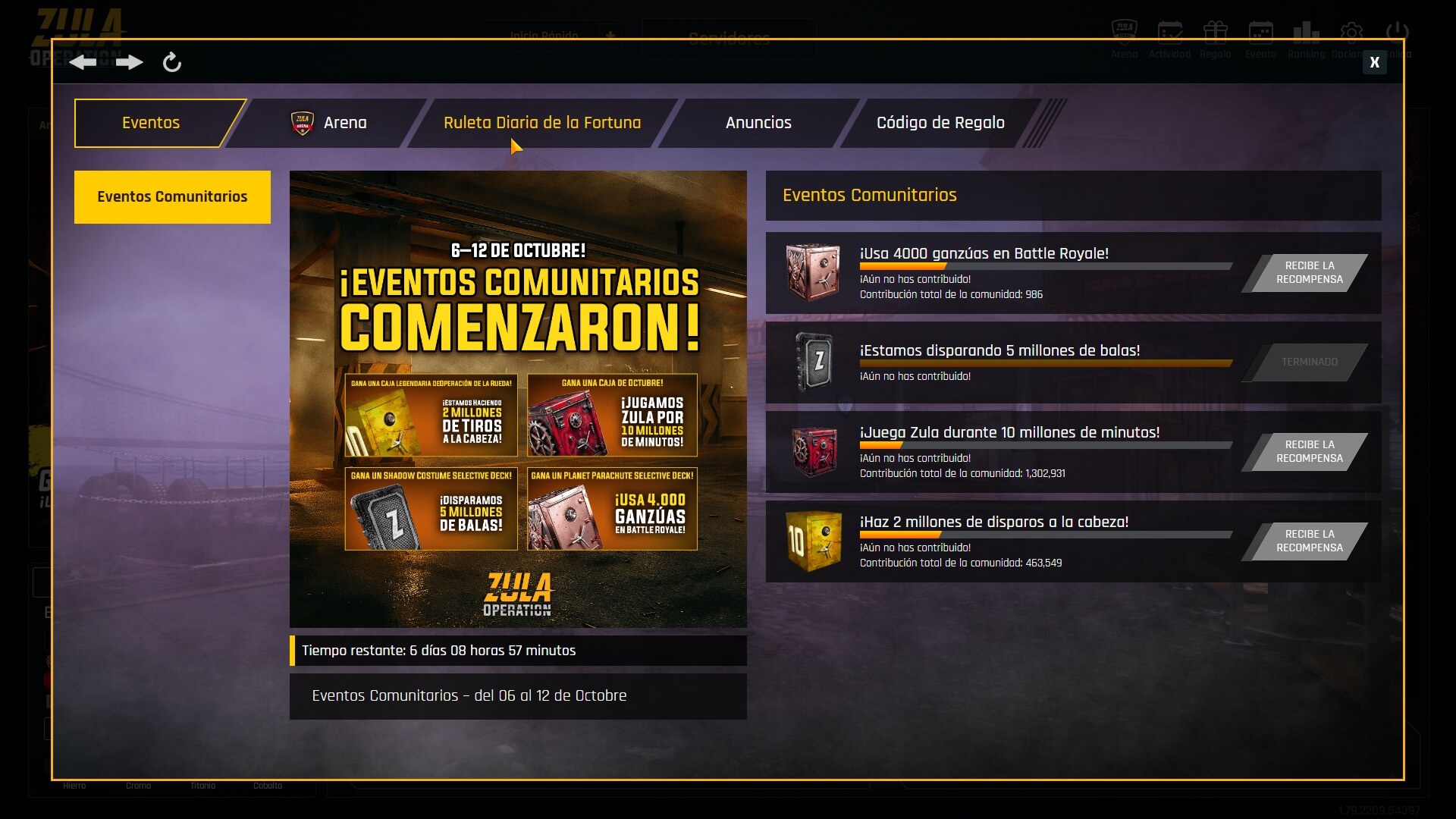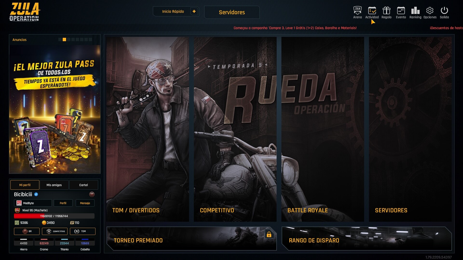 ¡El Zula Gear te está esperando dentro de la página “Actividad” en la pantalla de selección de servidor!