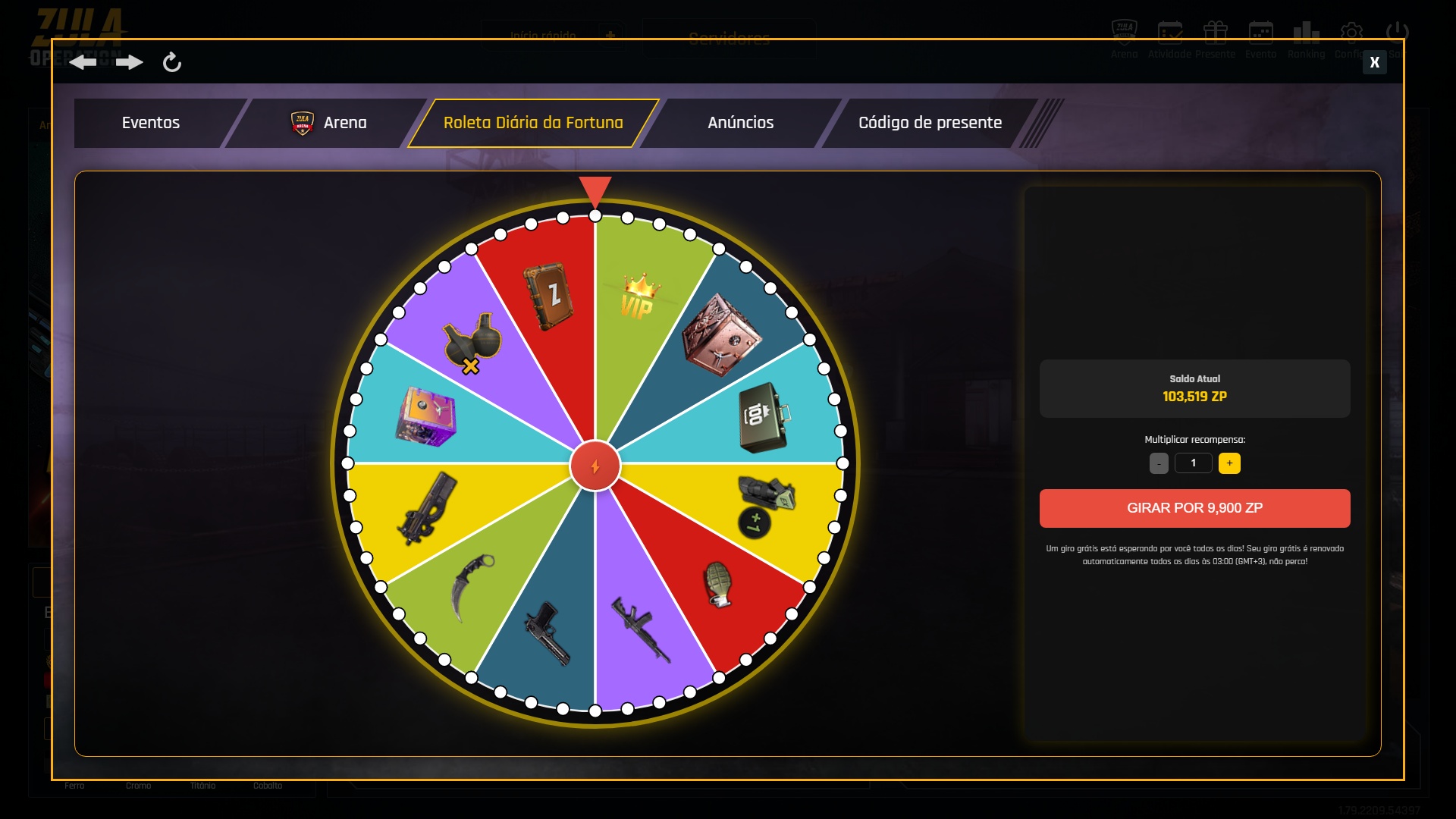 Tendrás un giro gratuito cada día y, después de eso, podrás seguir girando usando ZP acumulados dentro del juego.