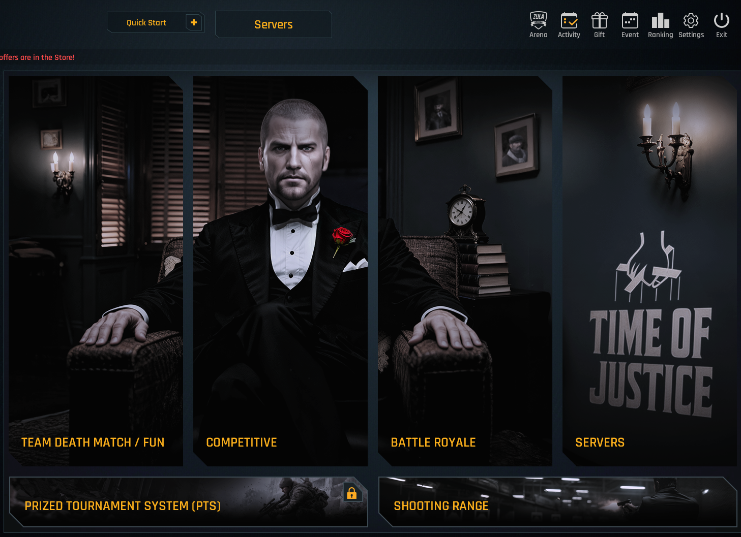 Justice Elite series color variants (Green, Red, and Black) have been added for AK-47, RSS-S1, MPT-76, AWP, KAR98, AUG-SNP, M93R, Karambit, and Dual Bomb. Justice Elite gloves have been added for all characters..