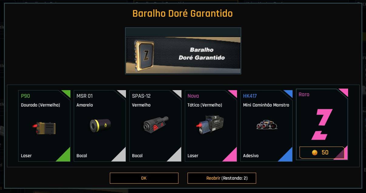 Botão “Abrir Novamente” para Caixas, Decks e Pacotes de Materiais