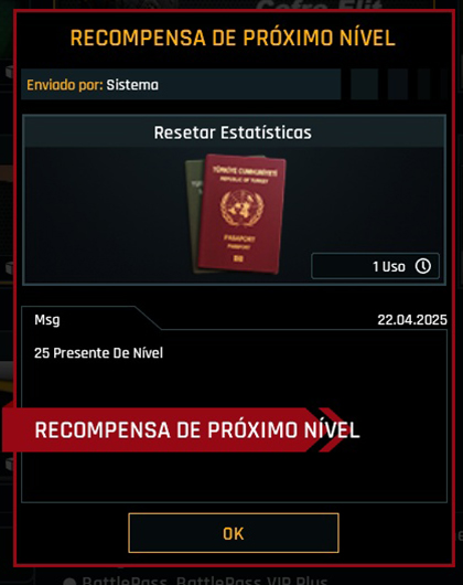 A interface visual do pop-up de subida de nível e recompensas foi renovada.